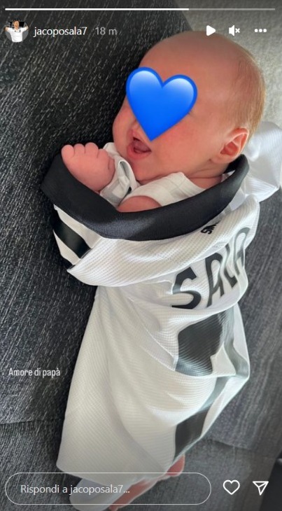 È nato solamente da un mese ma il piccolo Tommaso Sala, figlio di Jacopo, viene già circondato dall’atmosfera giusta. Ed è davvero tenera la foto postata su Instagram dal calciatore aquilotto con la creatura che dorme con addosso la maglia del papà. Questa la storia condivisa dall’ex Verona con una bella didascalia: “Amore di papà”.