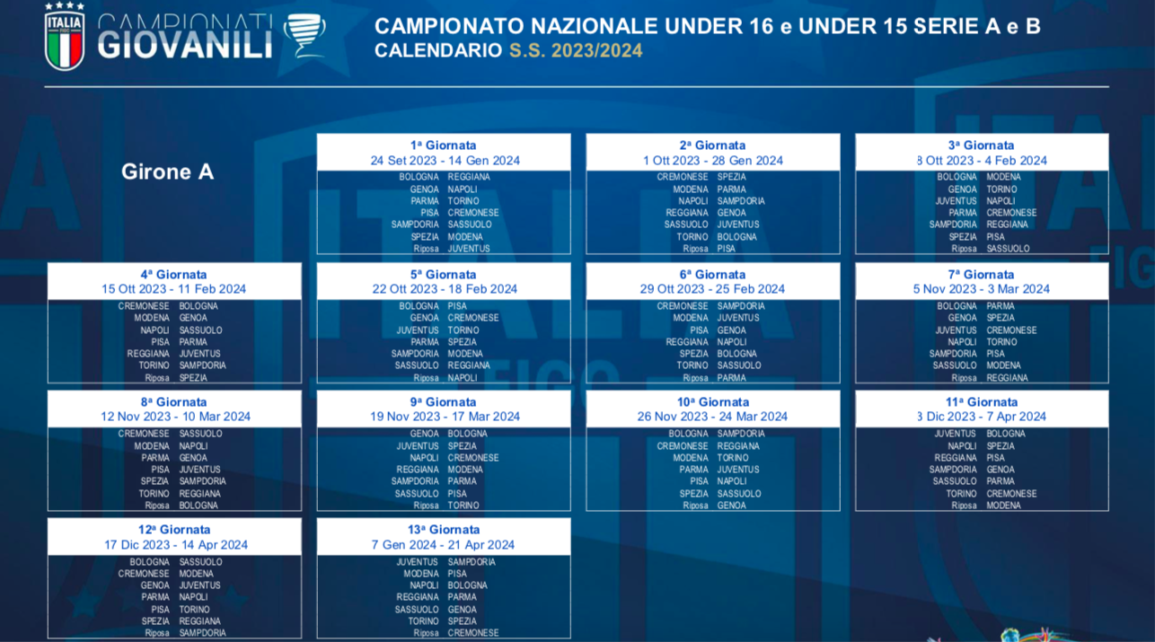 Oltre al prossimo cammino della Primavera aquilotta, oggi è stato il giorno della compilazione ufficiale anche dei calendari di Under 15 e Under 16. Le formazioni spezzine avranno lo stesso identico calendario, con partenza il prossimo 24 settembre e chiusura il 21 aprile. Nella prima gara l’avversario sarà il Modena, mentre si chiude a Torino contro i granata in un girone che comprende anche: Bologna, Cremonese, Genoa, Juventus, Napoli, Parma, Pisa, Reggiana, Sampdoria, Sassuolo.
