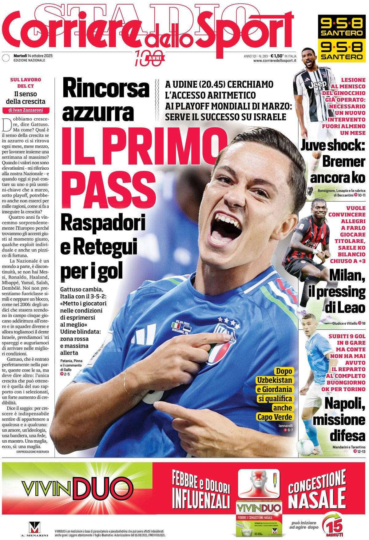 Le copertine dei quotidiani sportivi in edicola oggi, 14 ottobre 2025