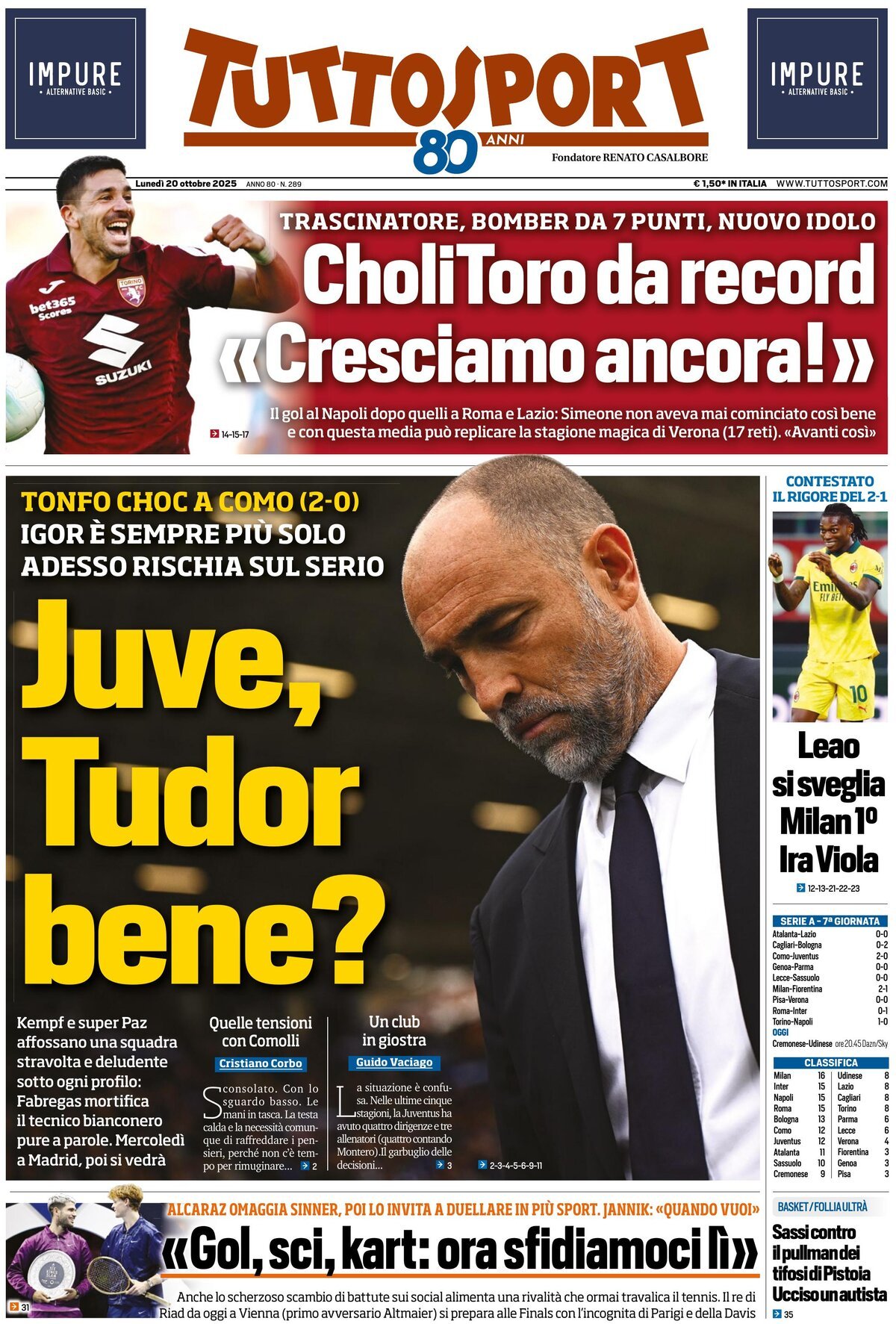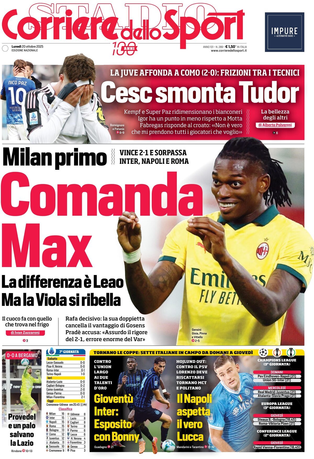 Le copertine dei quotidiani sportivi in edicola oggi, 20 ottobre 2025