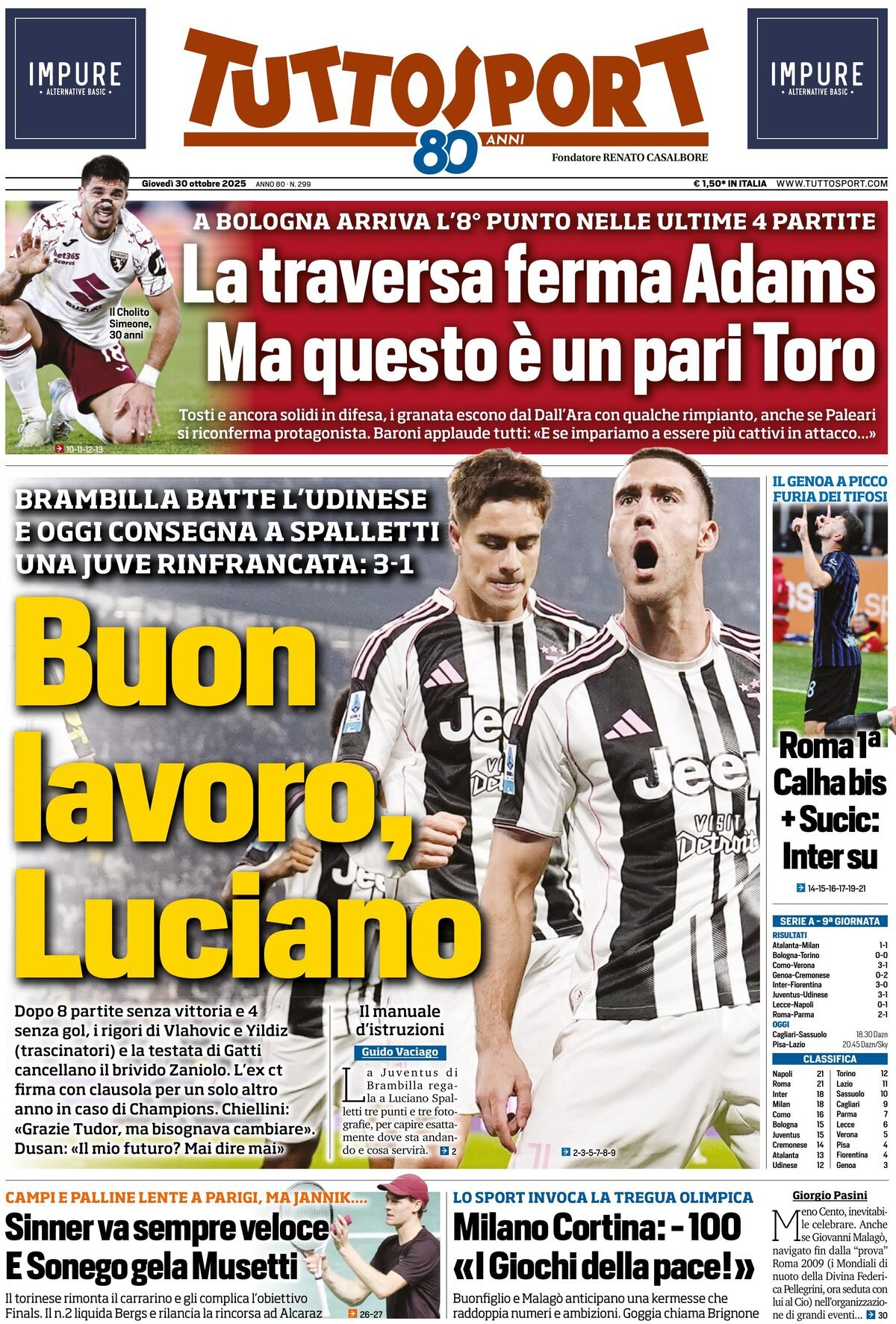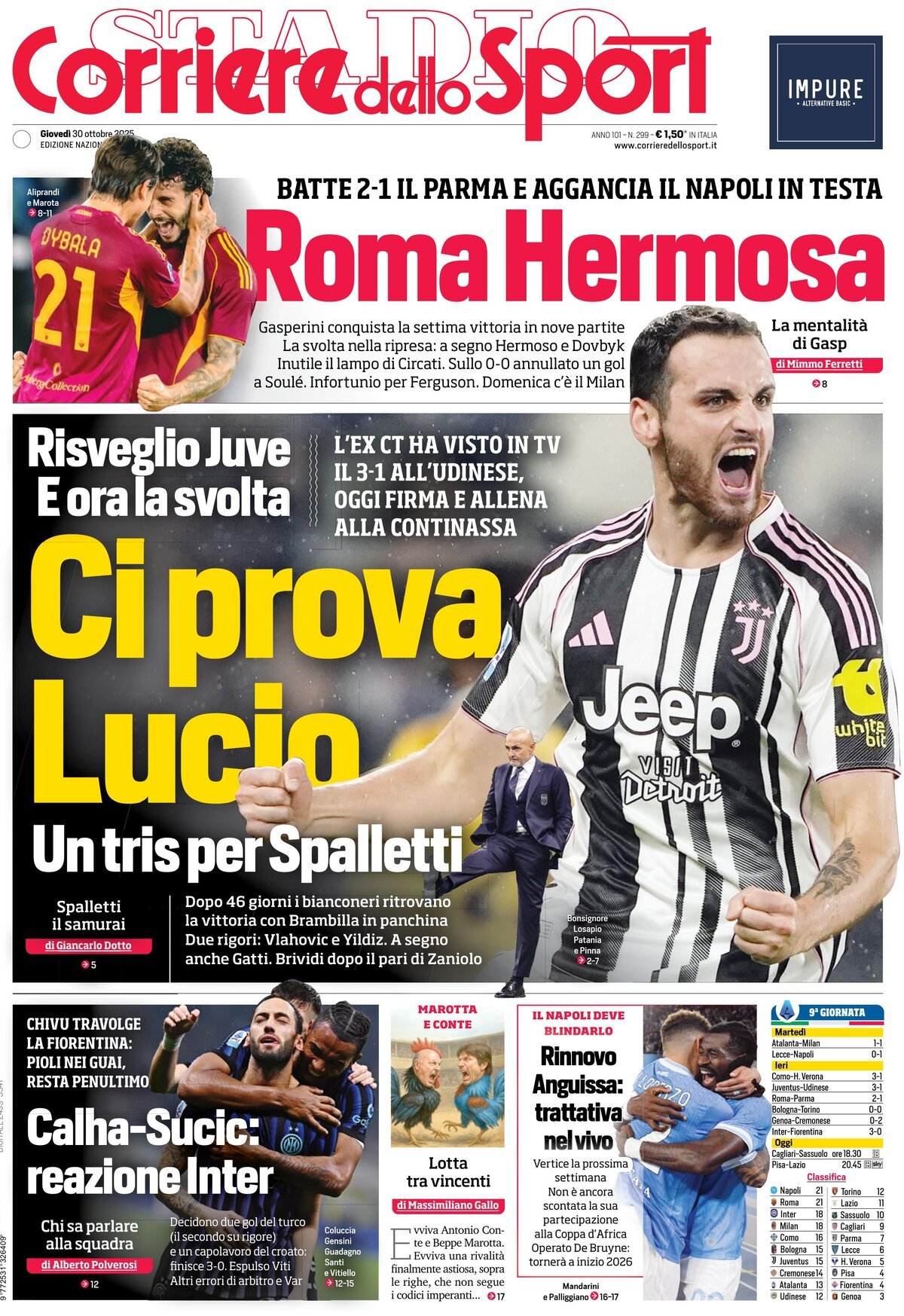 Le copertine dei quotidiani sportivi in edicola oggi, 30 ottobre 2025