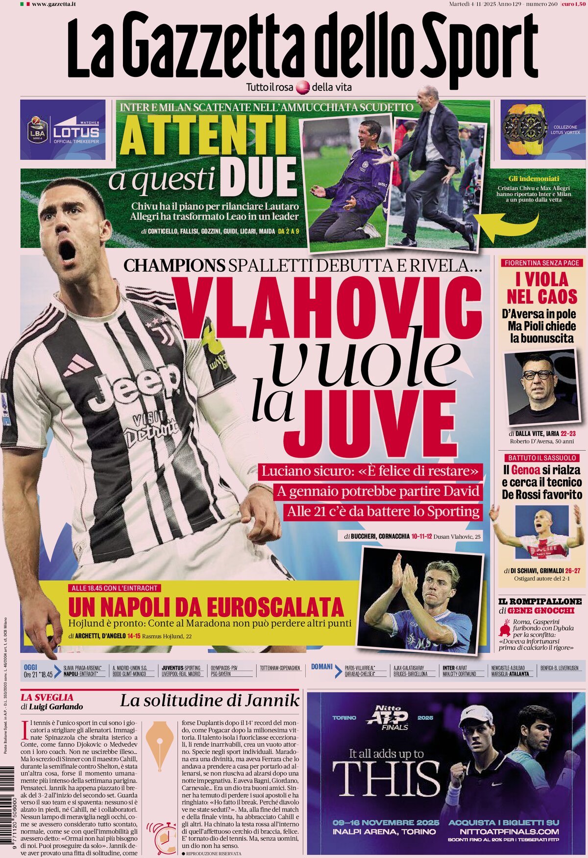 Le copertine dei quotidiani sportivi in edicola oggi, 4 novembre 2025