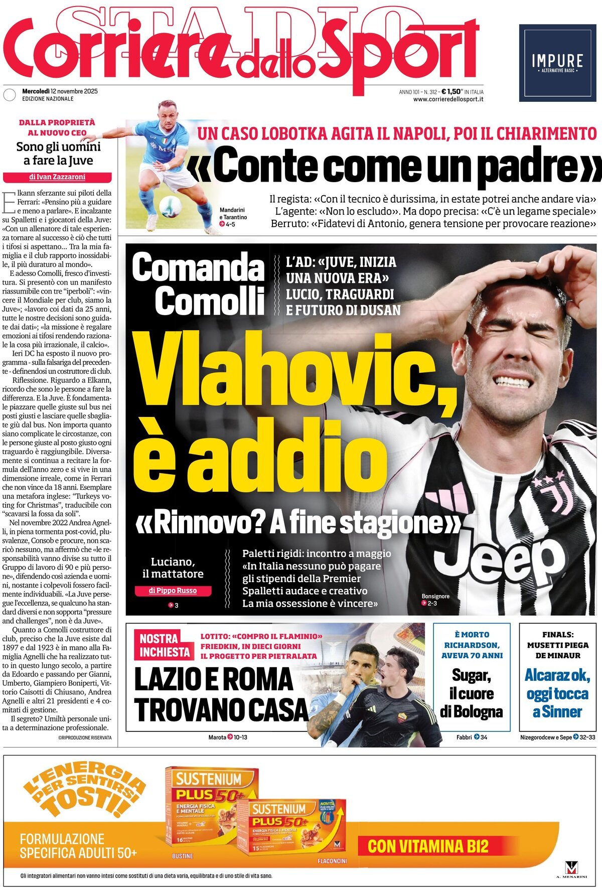 Le copertine dei quotidiani sportivi in edicola oggi, 12 novembre 2025