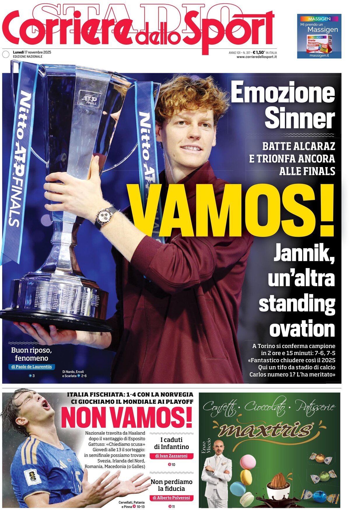 Le copertine dei quotidiani sportivi in edicola oggi, 17 novembre 2025
