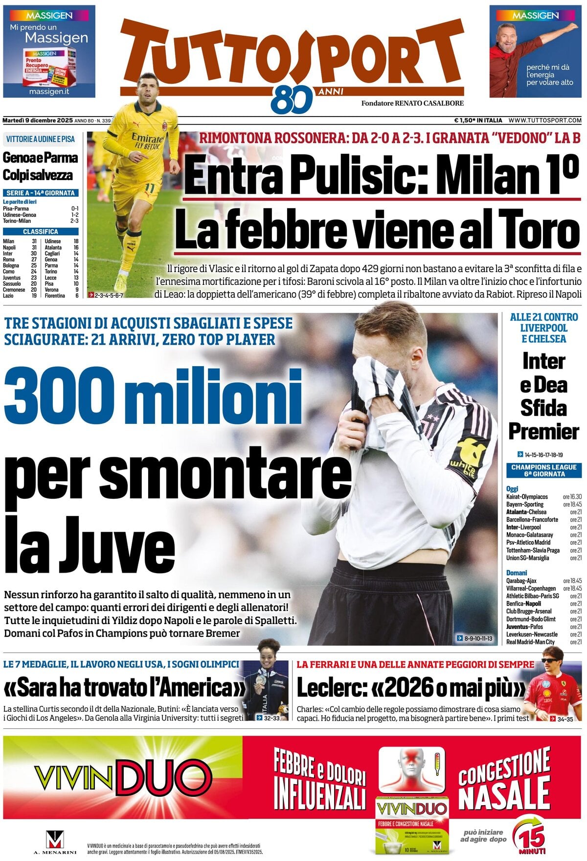 Le copertine dei quotidiani sportivi in edicola oggi, 9 dicembre 2025