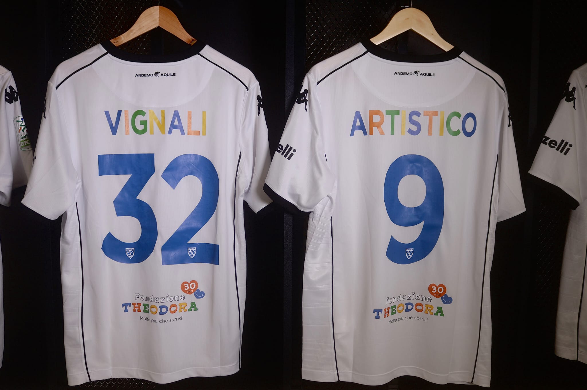 La nobile iniziativa in programma per Spezia-Modena vedrà gli aquilotti indossare delle maglie speciali dedicate a Fondazione Theodora (leggi qui), che da qualche tempo è partner del club di Via Melara. Nella nostra gallery vi proponiamo tutti i dettagli, le rifiniture e le notazioni cromatiche che comporranno le maglie della formazione di Donadoni.