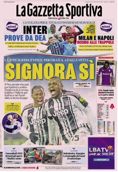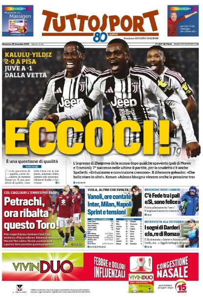 Le copertine dei quotidiani sportivi in edicola oggi, 28 dicembre 2025