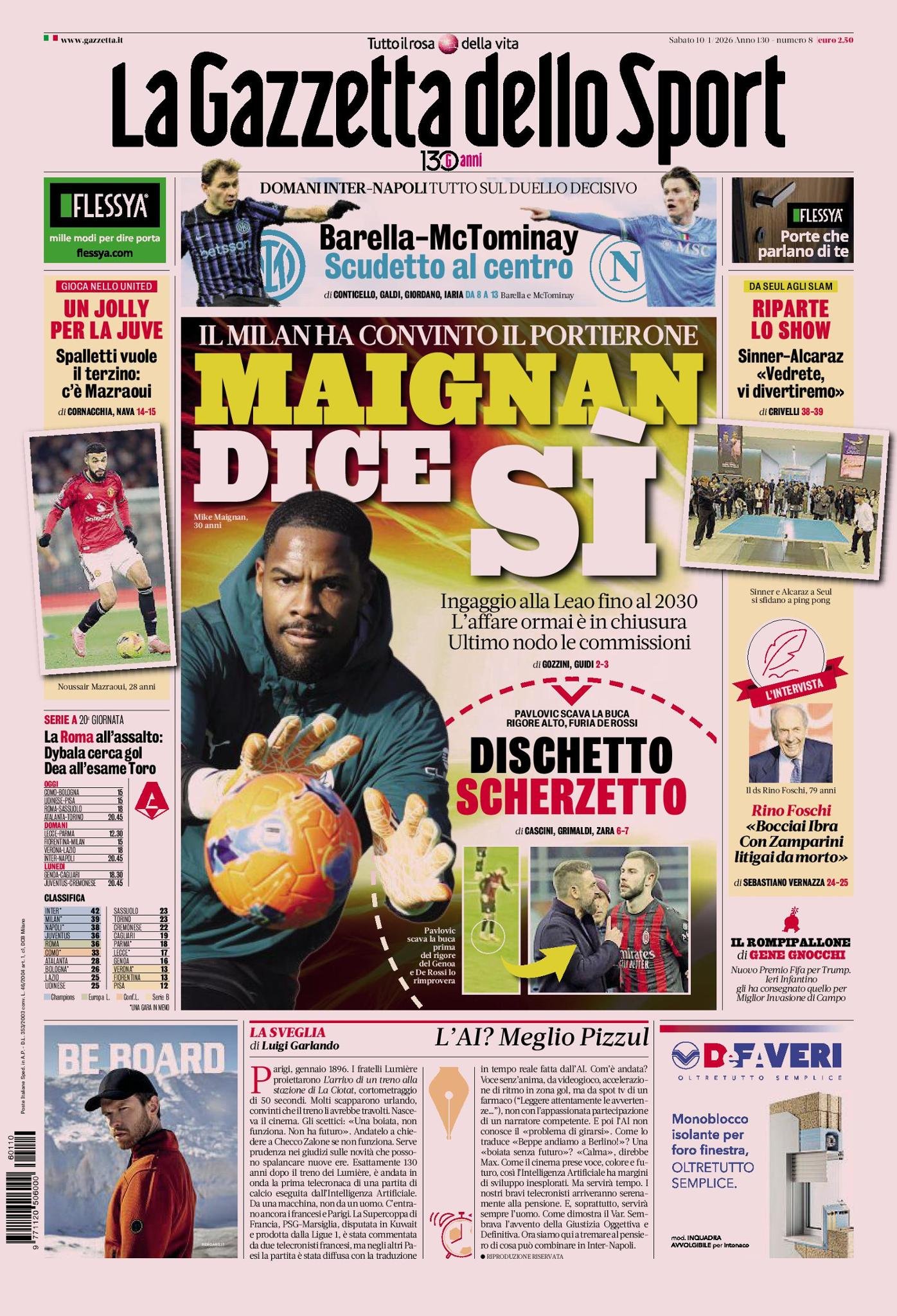 Le copertine dei quotidiani sportivi in edicola oggi, 10 gennaio 2026