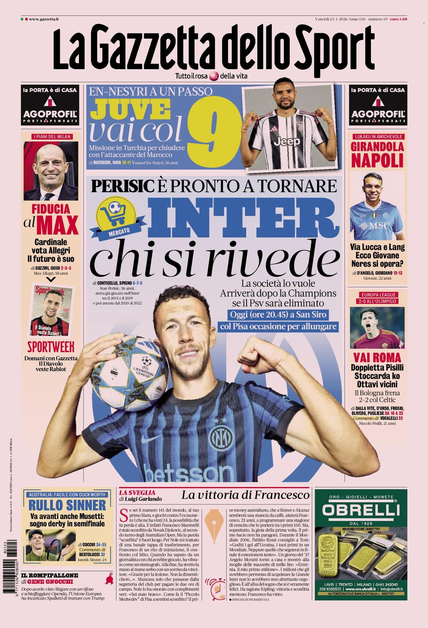 Le copertine dei quotidiani sportivi in edicola oggi, 23 gennaio 2026