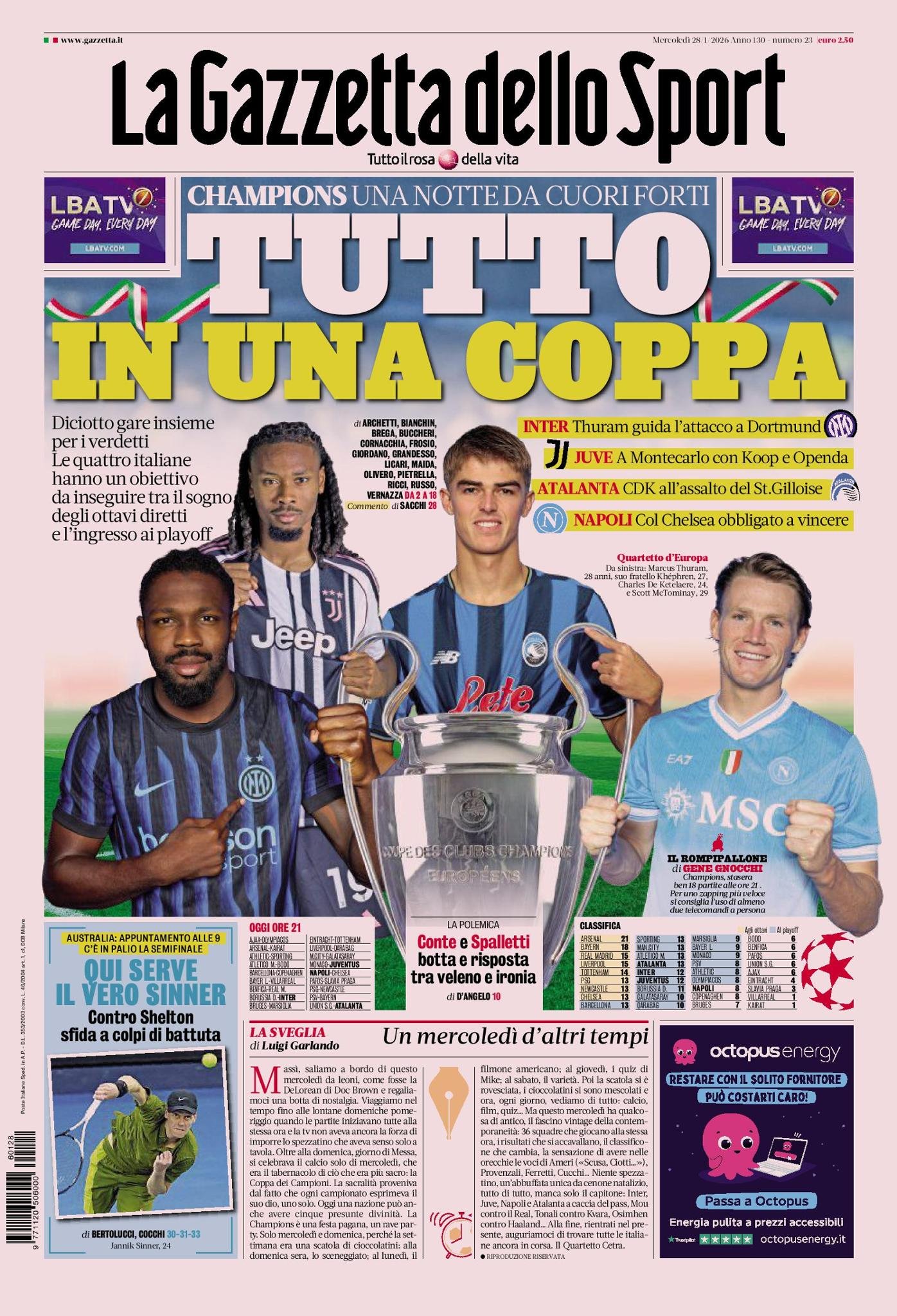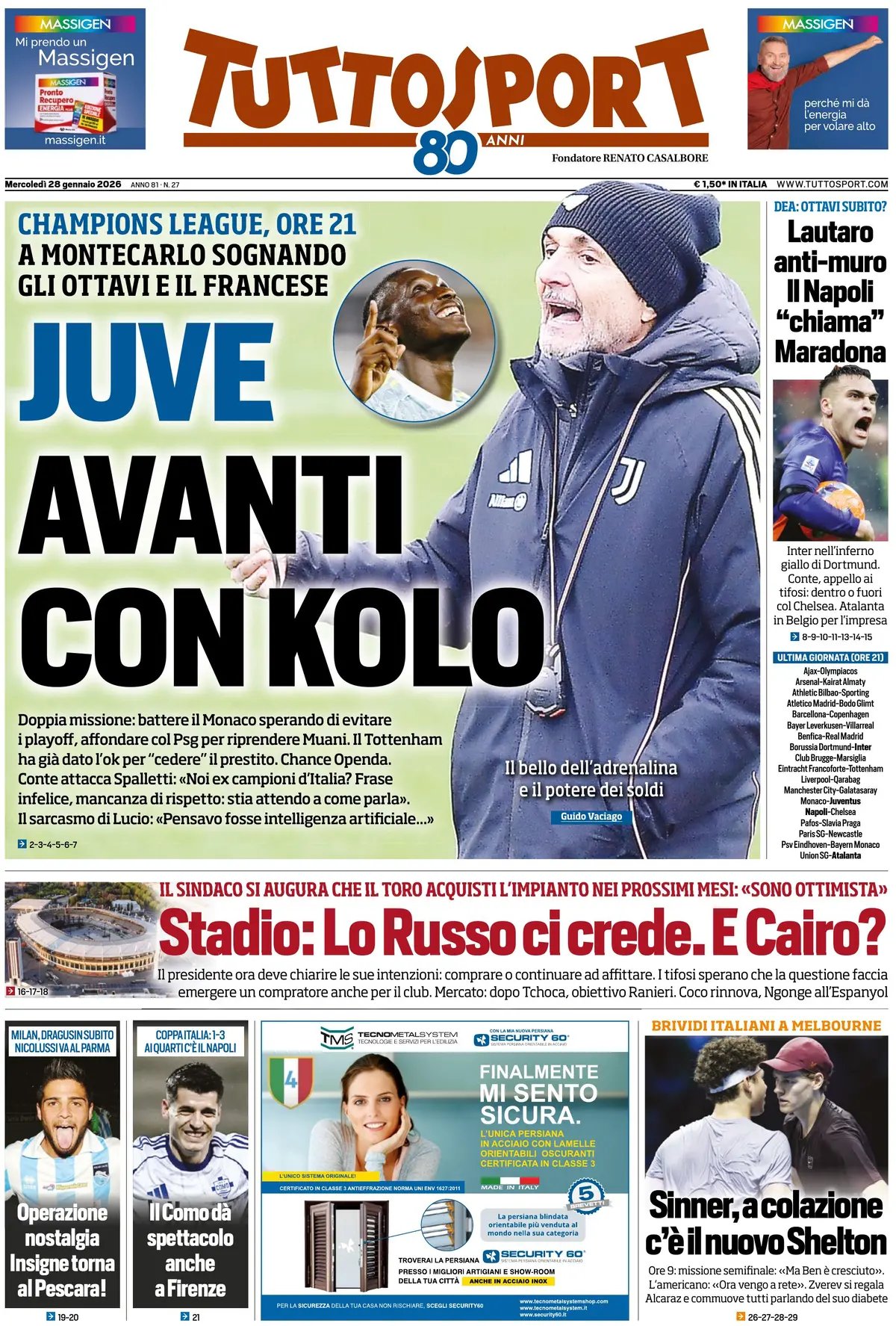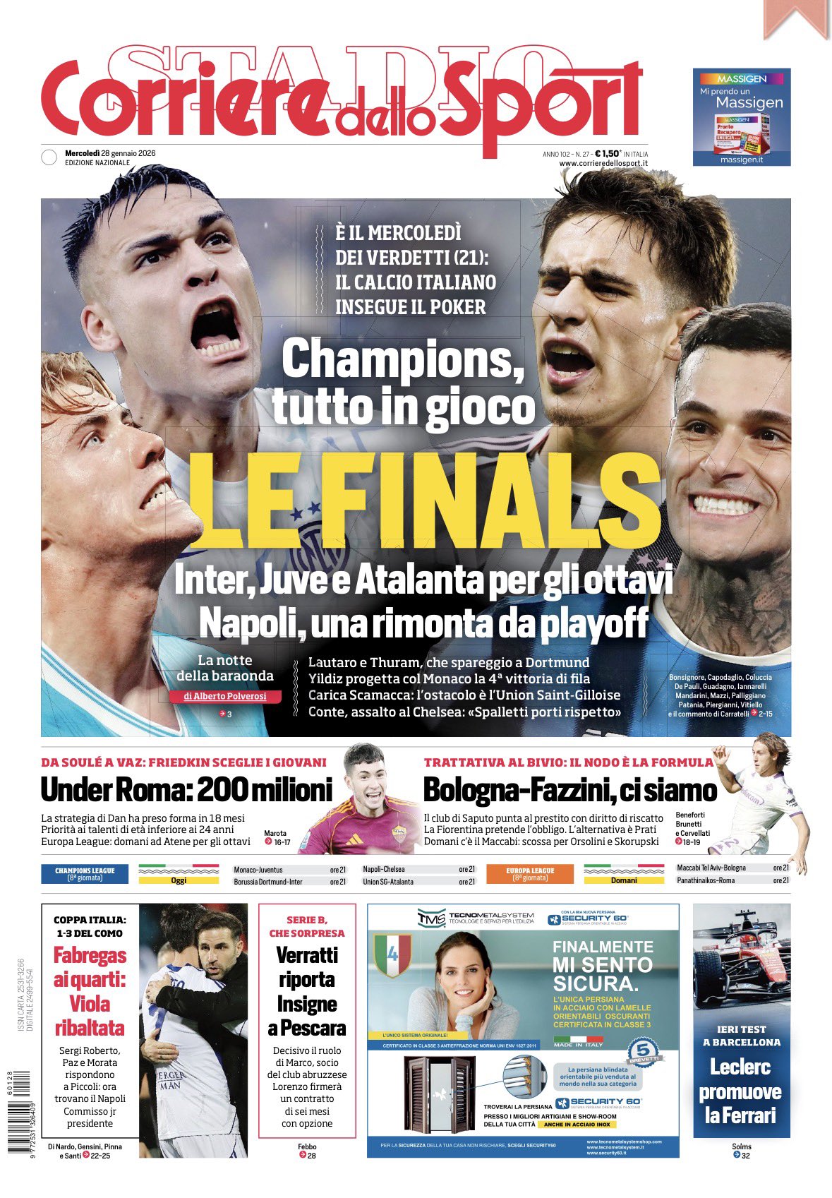 Le copertine dei quotidiani sportivi in edicola oggi, 28 gennaio 2026