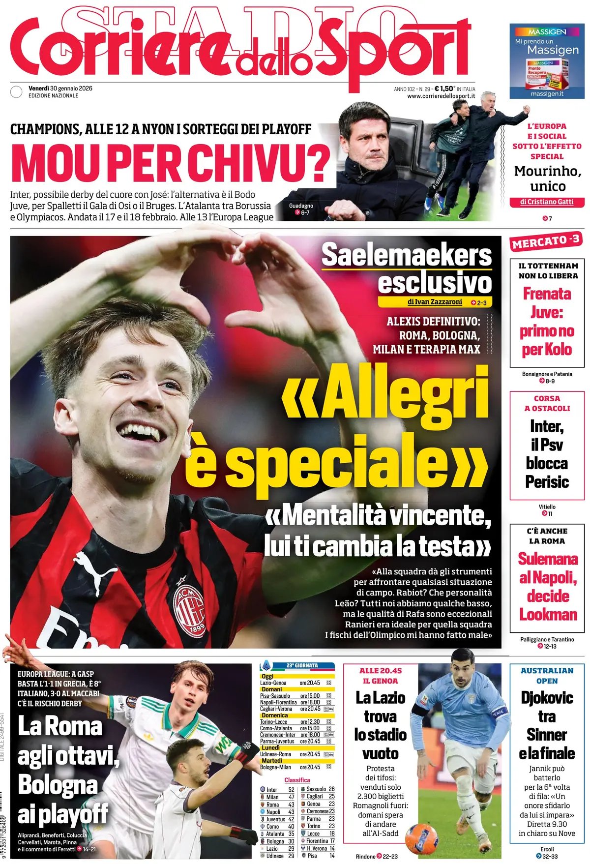 Le copertine dei quotidiani sportivi in edicola oggi, 30 gennaio 2026