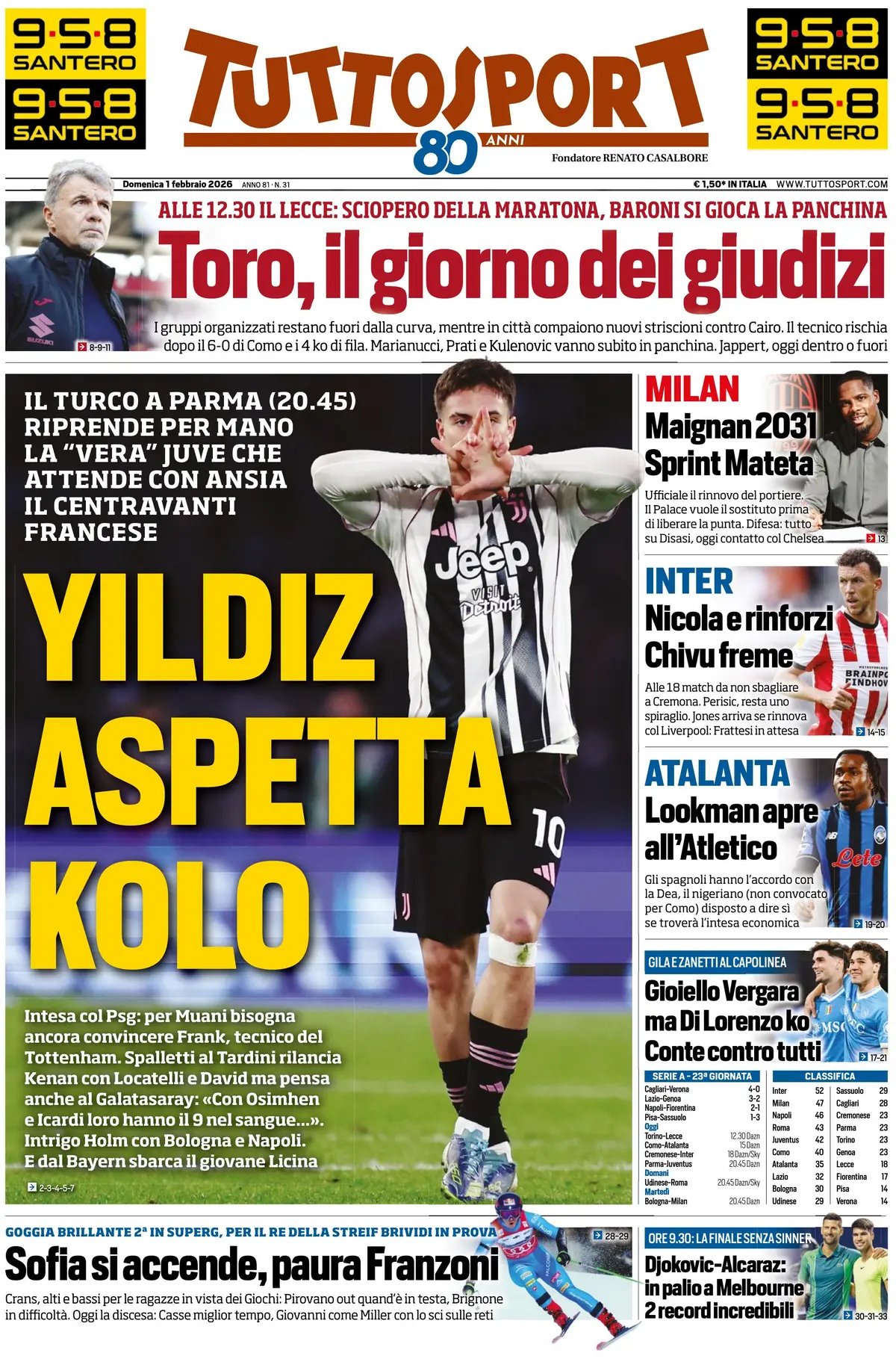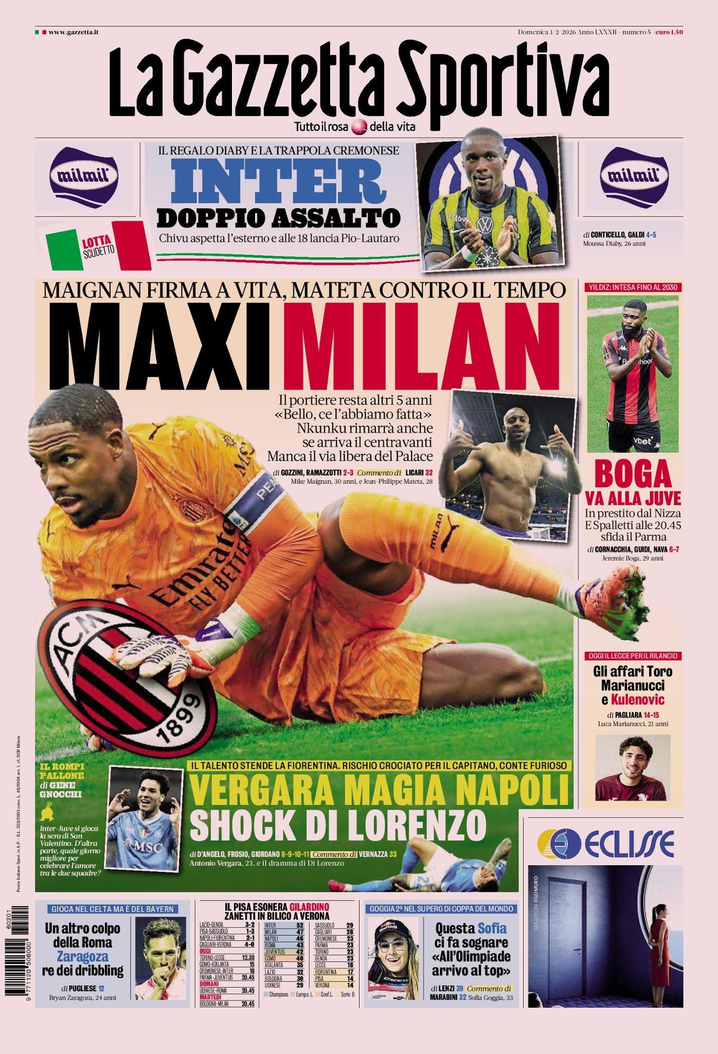 Le copertine dei quotidiani sportivi in edicola oggi, 1 febbraio 2026