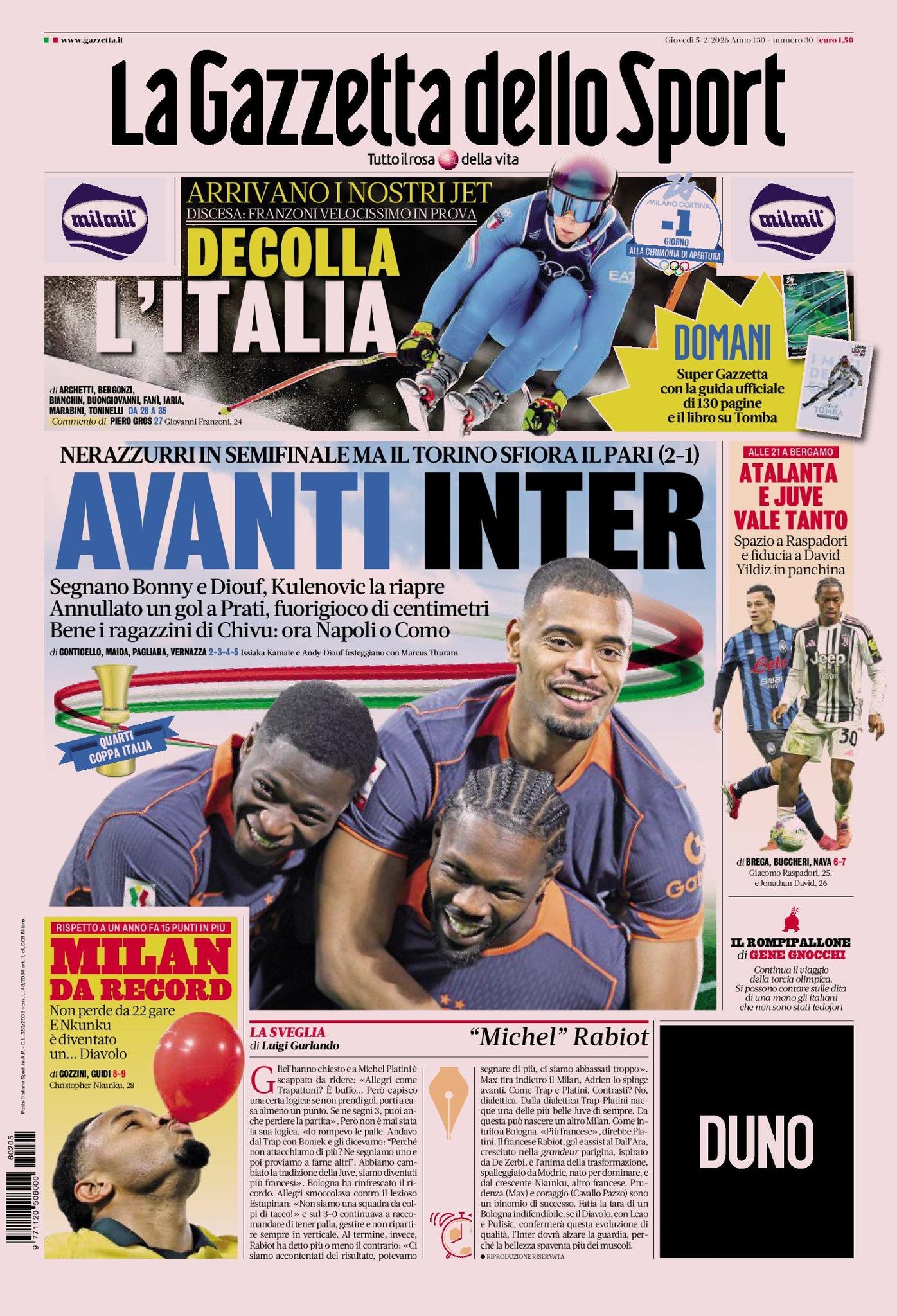 Le copertine dei quotidiani sportivi in edicola oggi, 5 febbraio 2026