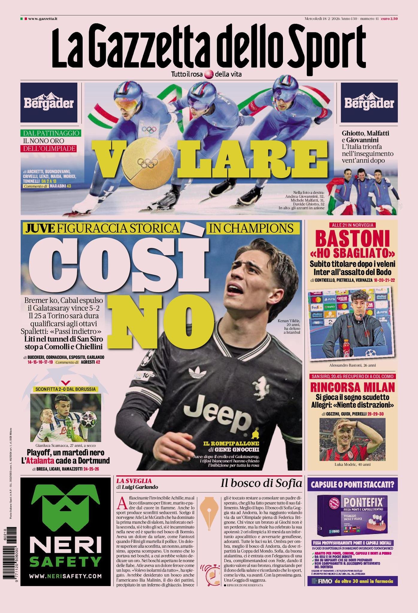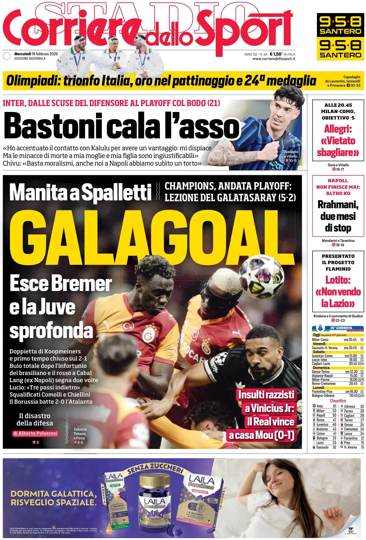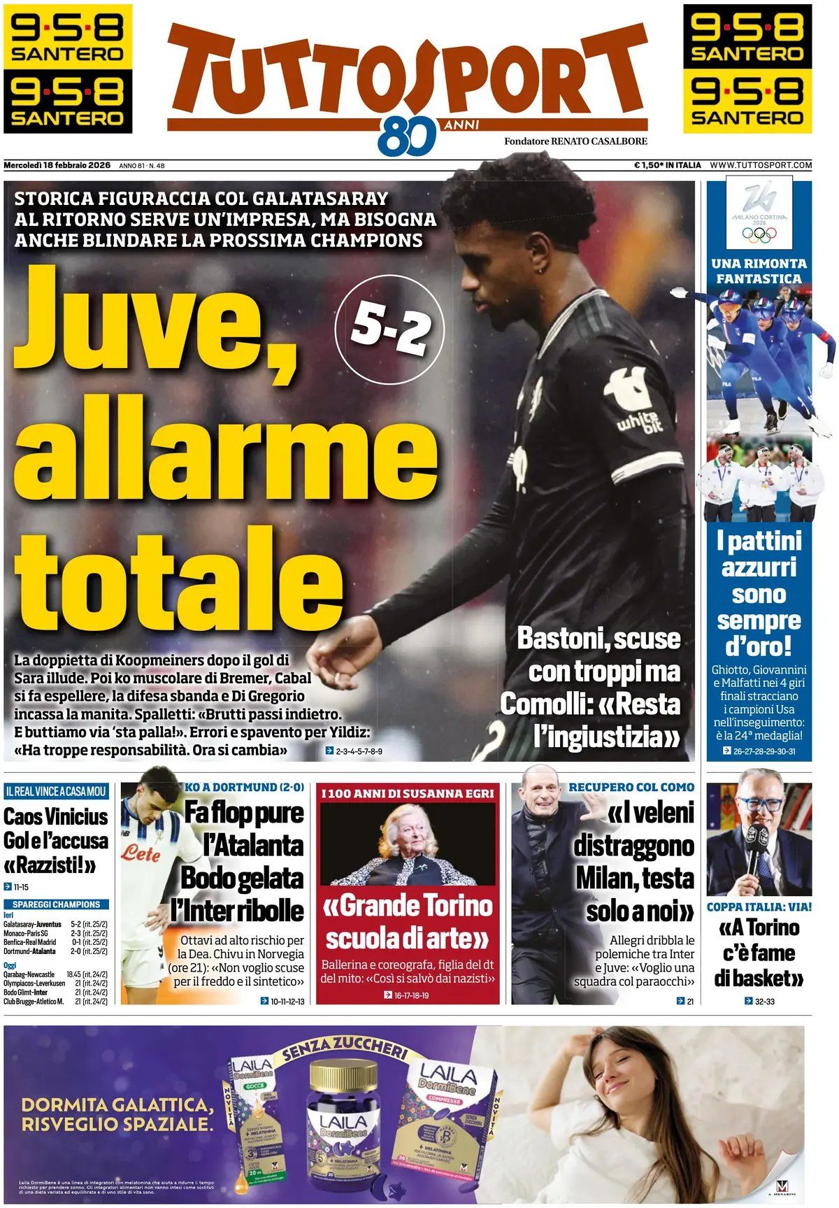 Le copertine dei quotidiani sportivi in edicola oggi, 18 febbraio 2026