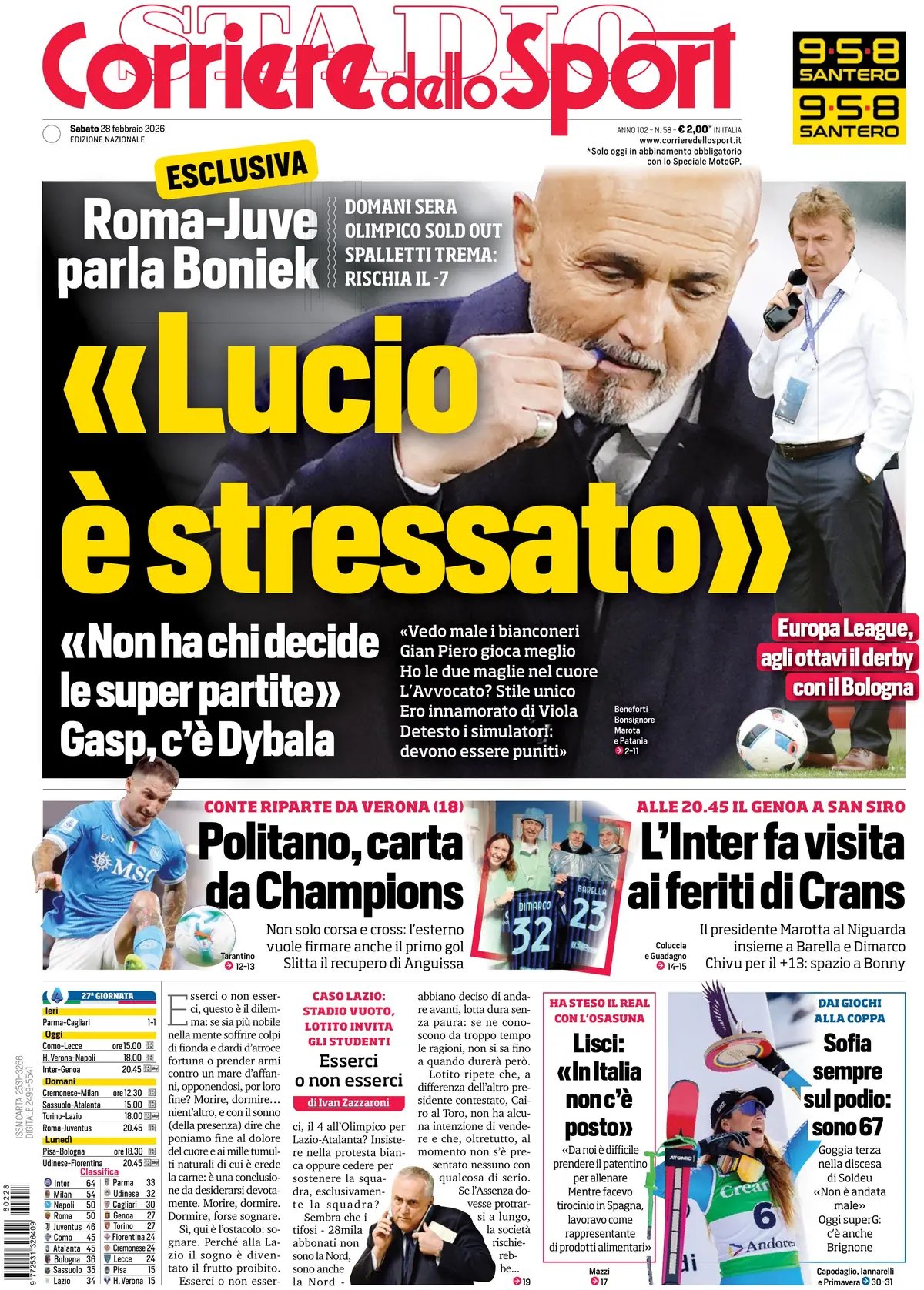 Le copertine dei quotidiani sportivi in edicola oggi, 28 febbraio 2026