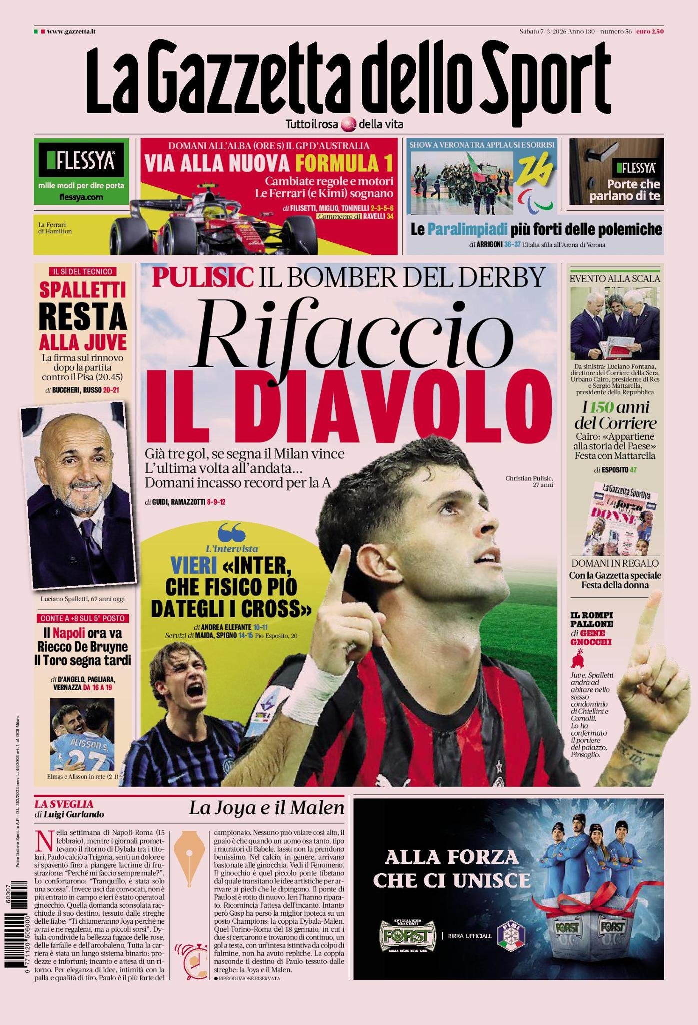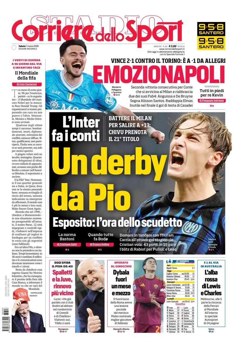 Le copertine dei quotidiani sportivi in edicola oggi, 7 marzo 2026