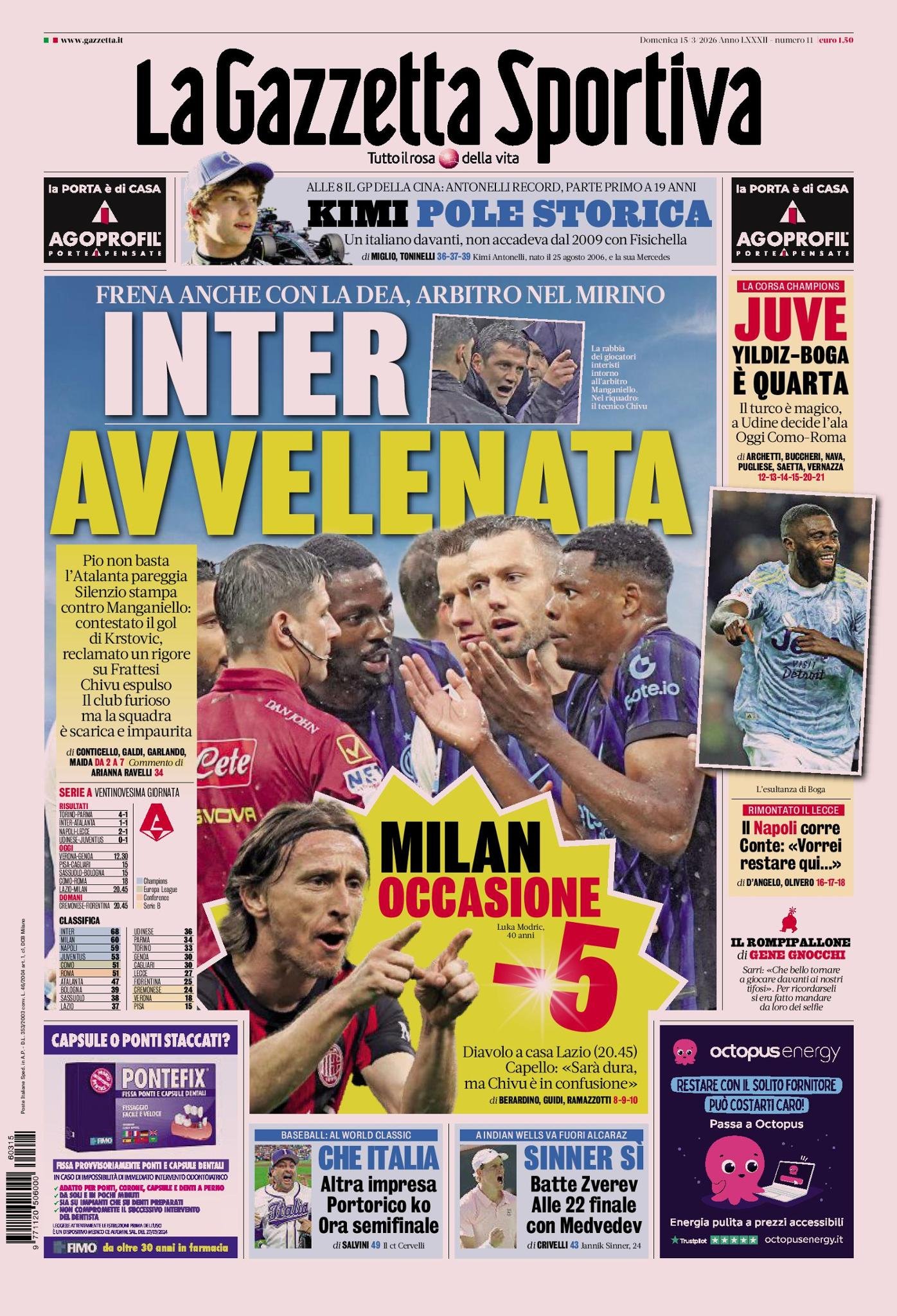 • Le copertine dei quotidiani sportivi in edicola oggi, 15 marzo 2026