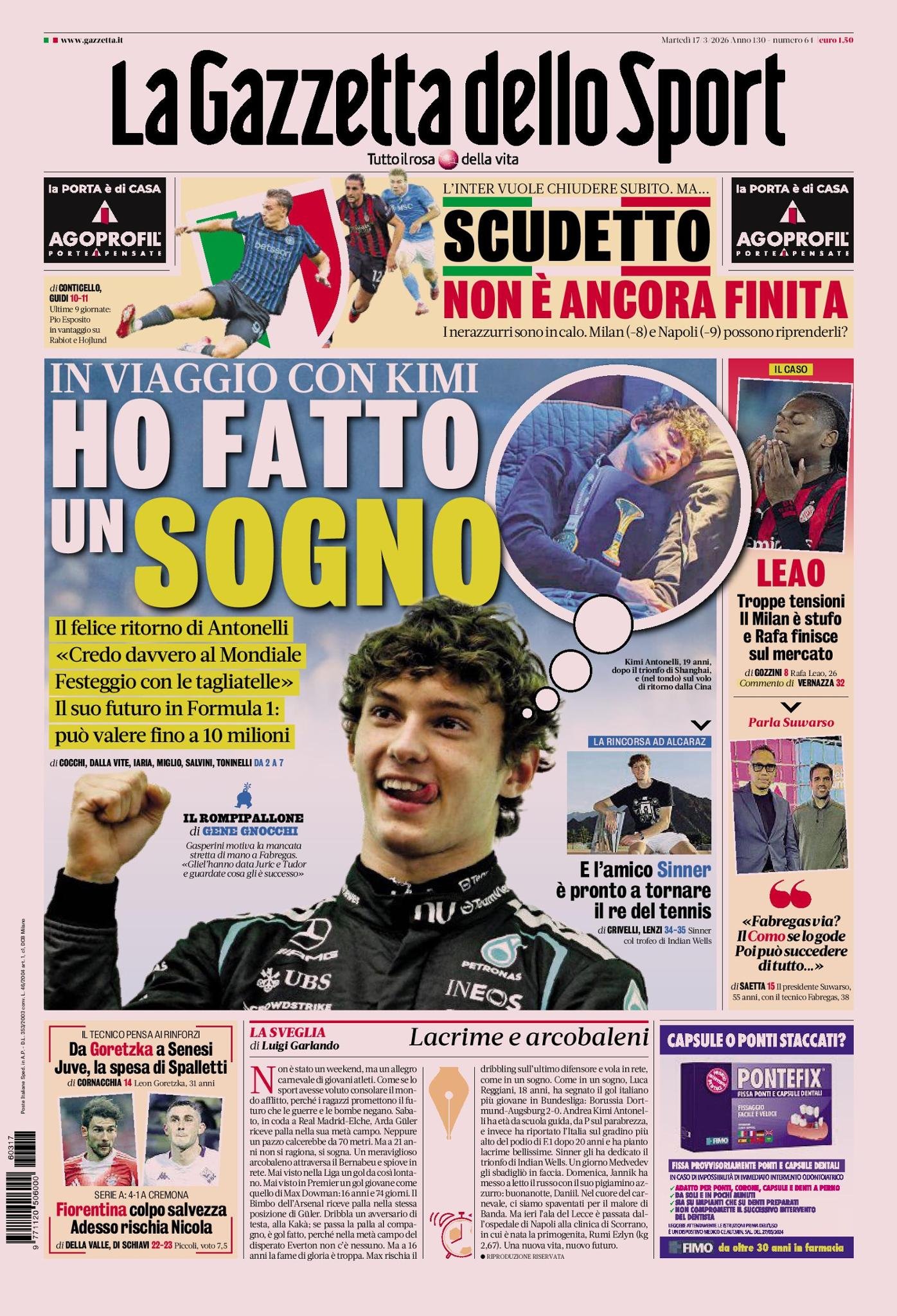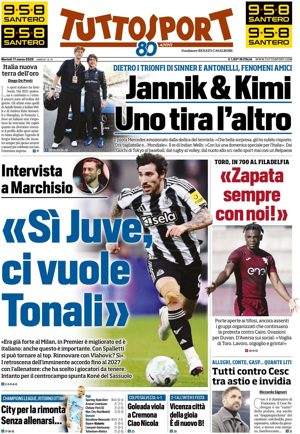 Le copertine dei quotidiani sportivi in edicola oggi, 17 marzo 2026