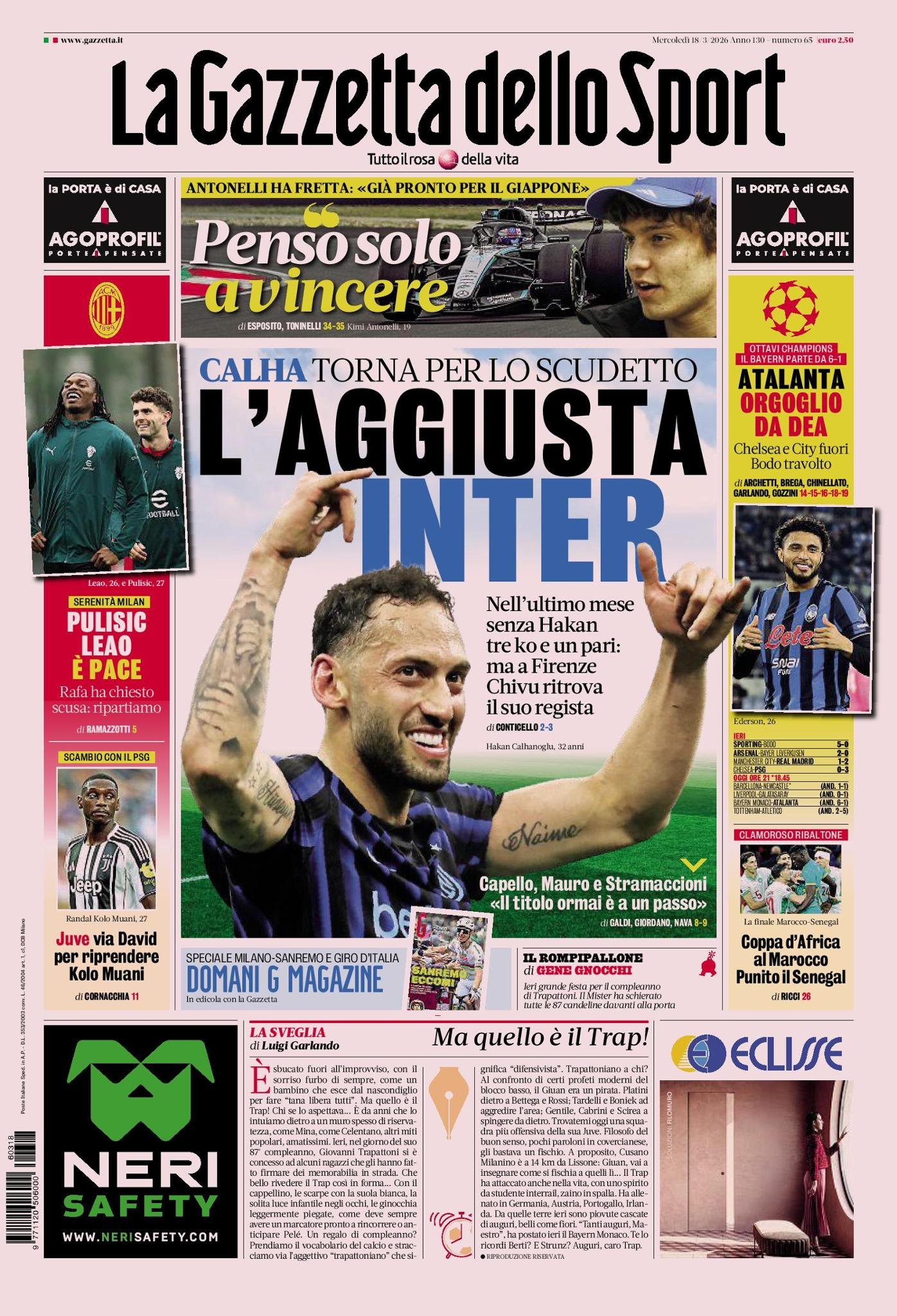 Le copertine dei quotidiani sportivi in edicola oggi, 18 marzo 2026