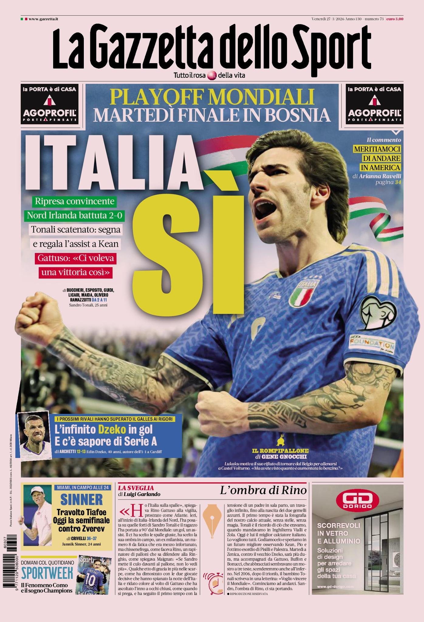Le copertine dei quotidiani sportivi in edicola oggi, 27 marzo 2026