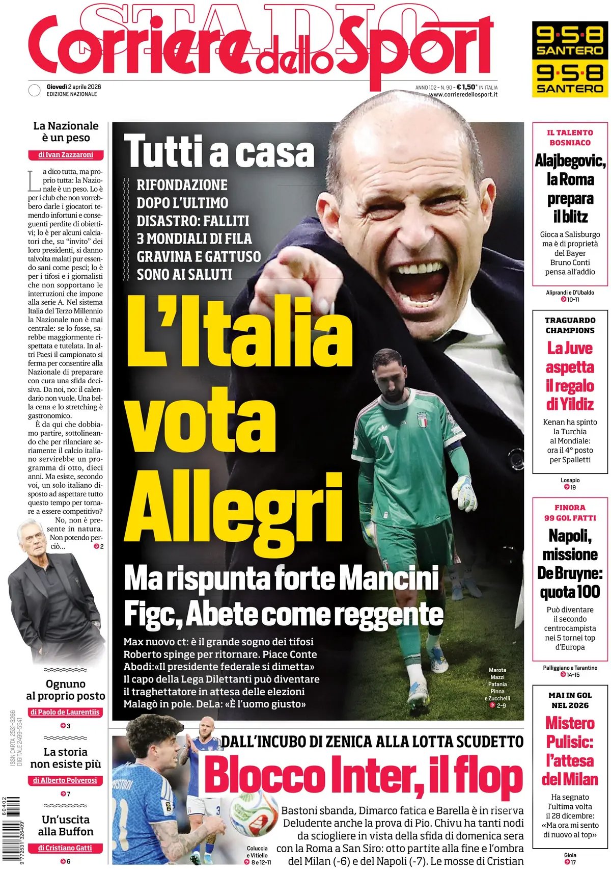 Le copertine dei quotidiani sportivi in edicola oggi, 2 aprile 2026
