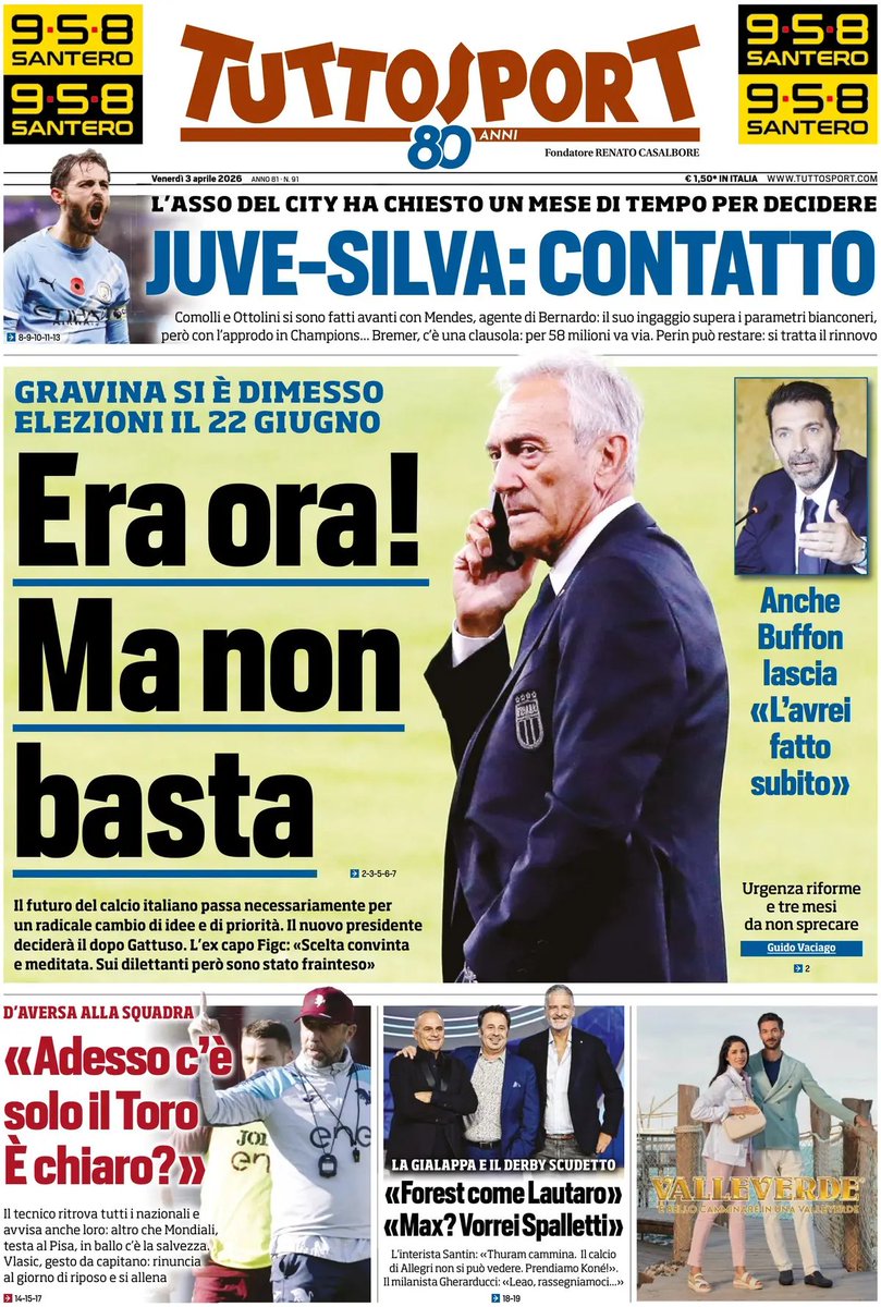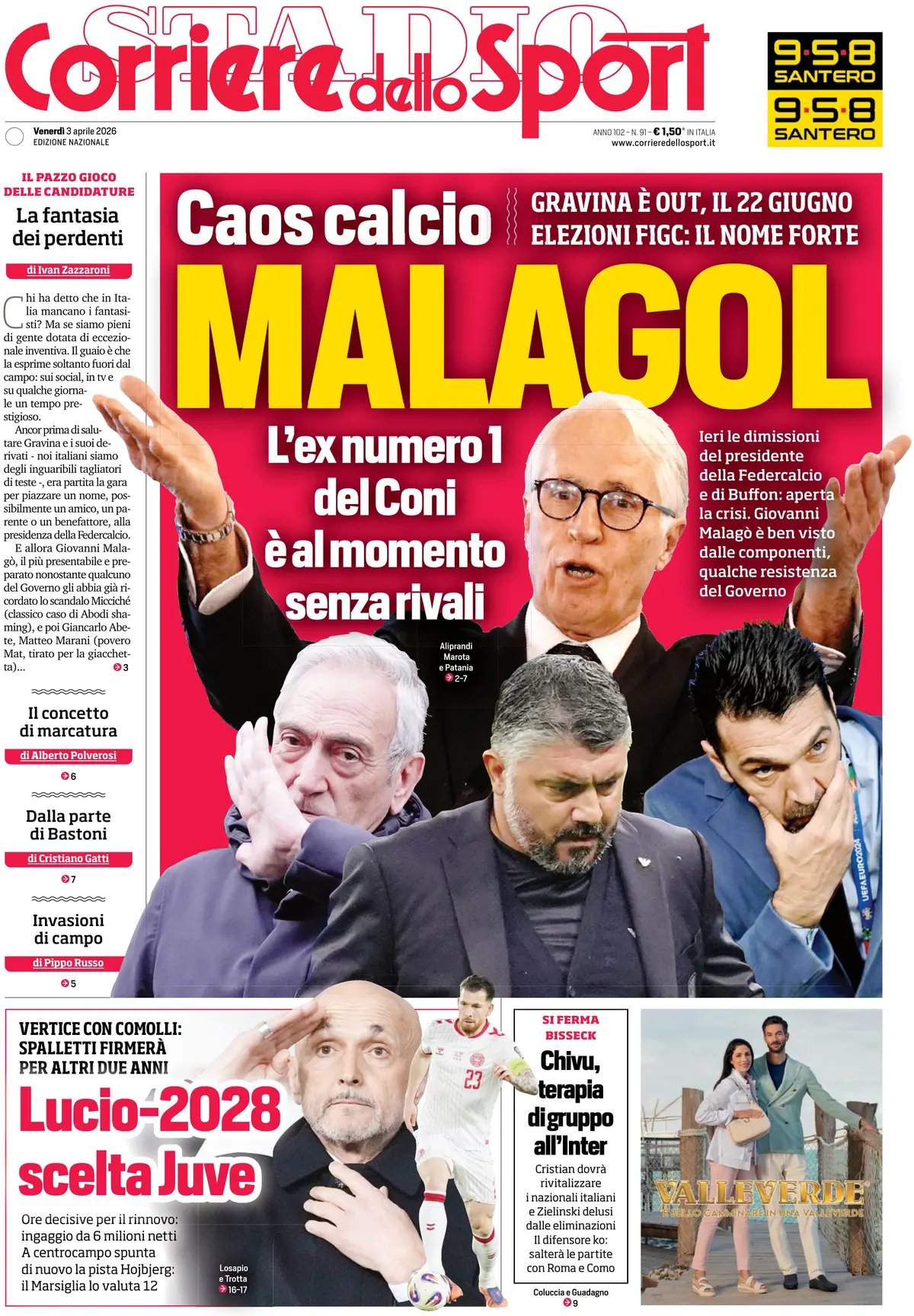 3 thoughts on “Le prime pagine dei quotidiani: “Lascia e attacca”, “Malagol”