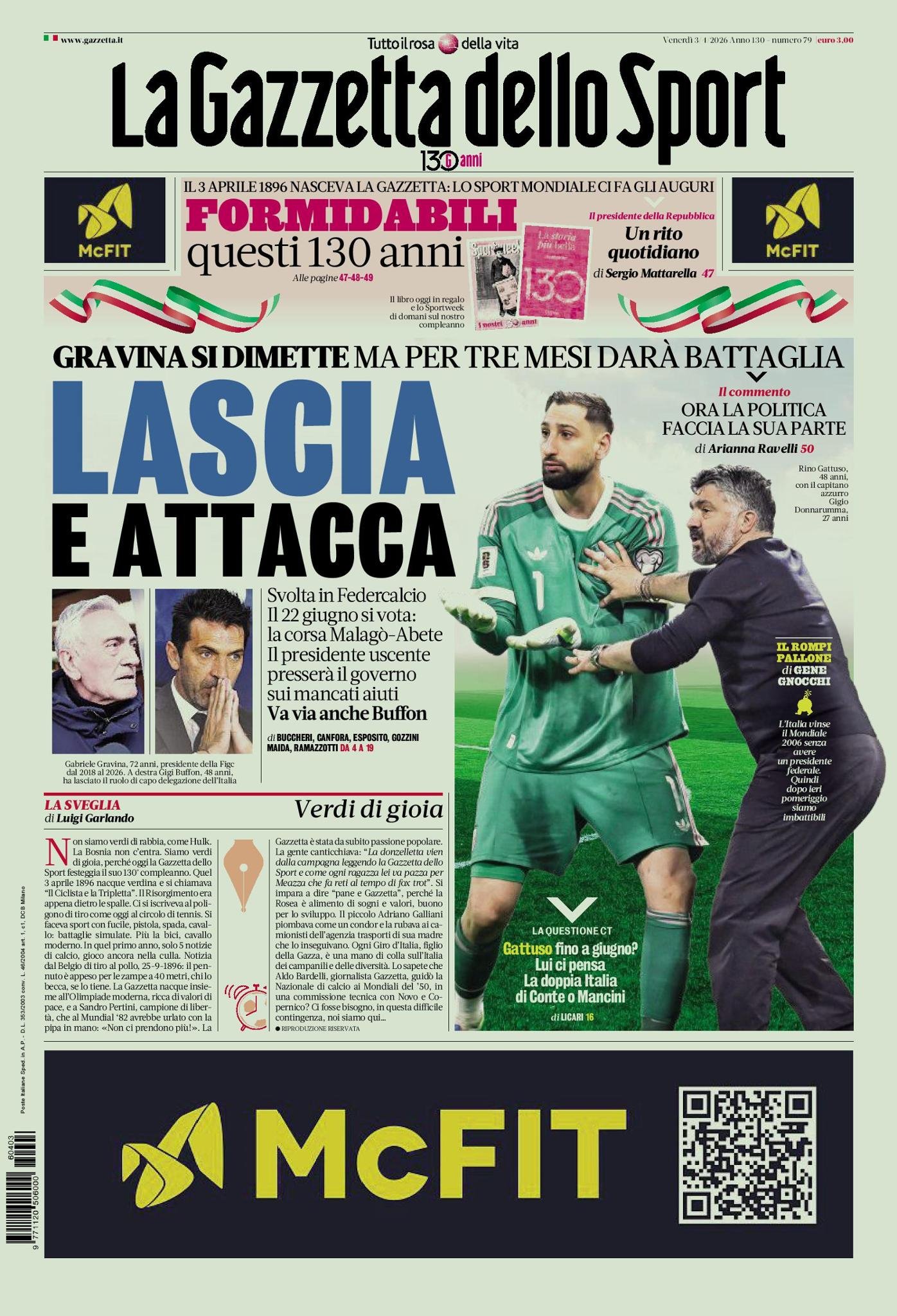 • Le copertine dei quotidiani sportivi in edicola oggi, 3 aprile 2026
