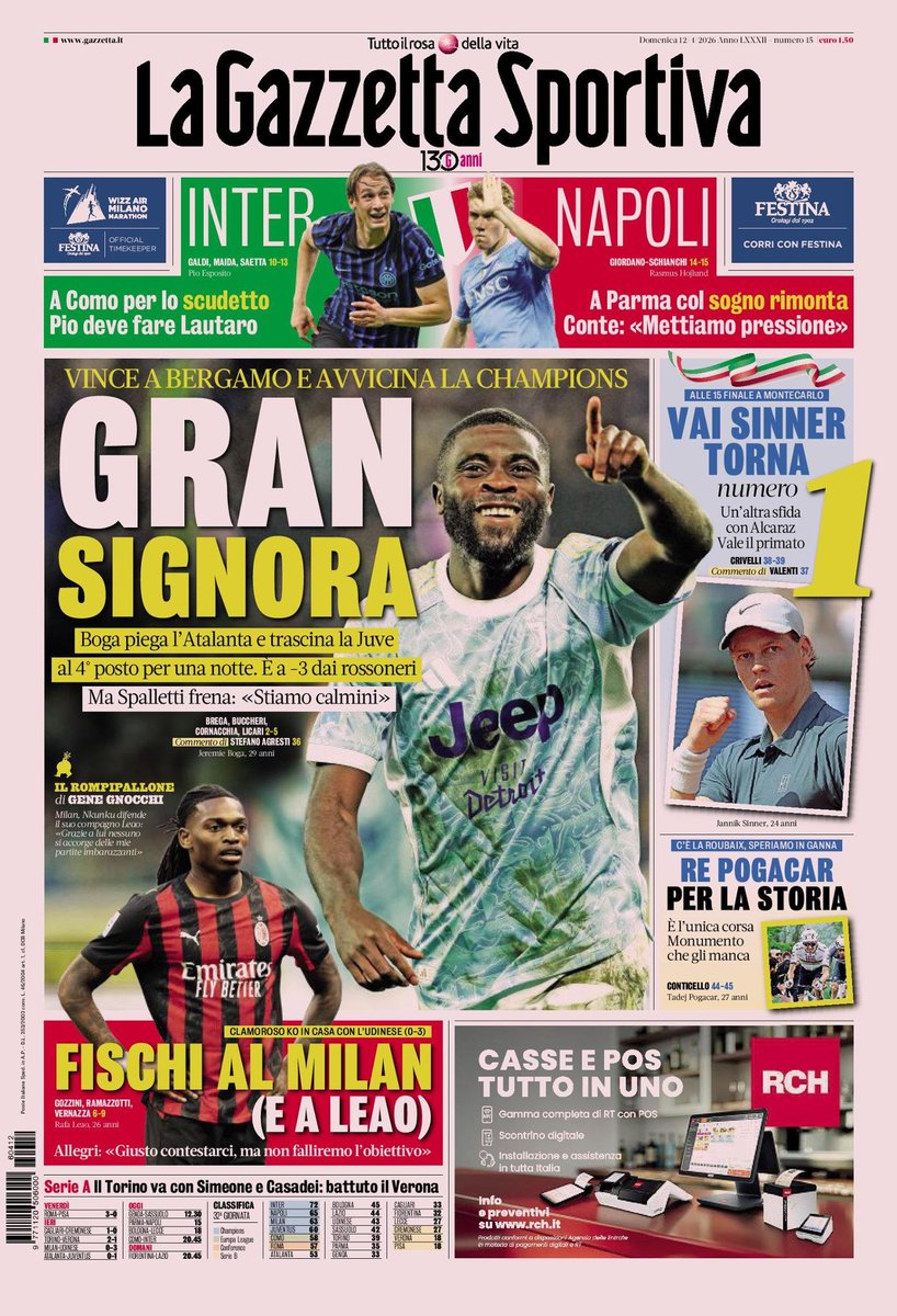 Le copertine dei quotidiani sportivi in edicola oggi, 12 aprile 2026