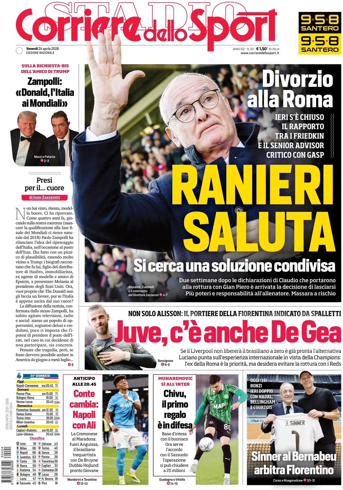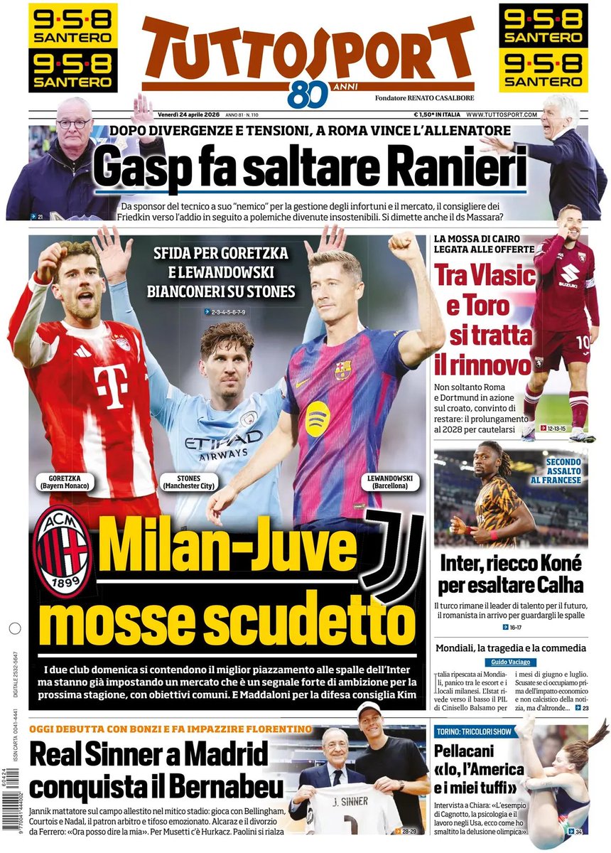 Le copertine dei quotidiani sportivi in edicola oggi, 24 aprile 2026