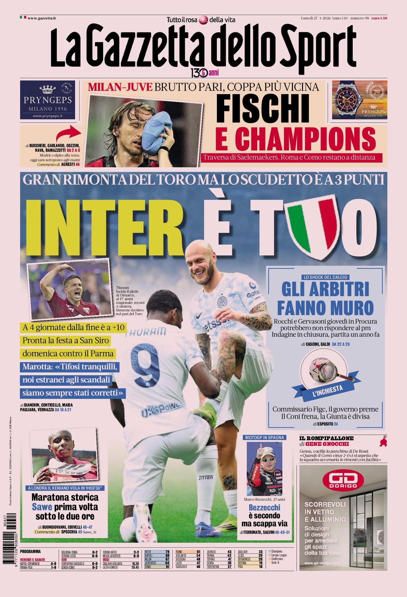 Le copertine dei quotidiani sportivi in edicola oggi, 27 aprile 2026